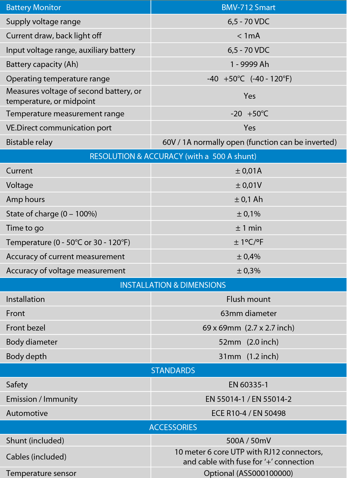With Bluetooth built-in, the BMV Smart is ready for the Internet of Things (IoT) era. With Bluetooth being implemented in most other Victron Energy products, wireless communication between products will simplify system installation and enhance performance.